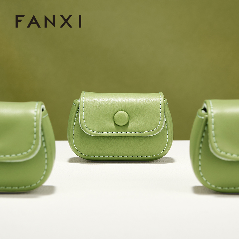 B028 FANXI New-arrival Green Black PU Leahter Ring Storage Bag