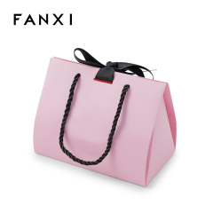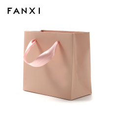 FANXI Custom Logo Jewelry Bags With Pink Ribbon And Gold Cord For Jewellery Watch Gift Packaging White Printed Paper Shopping Bag Item No.: TC-D00502