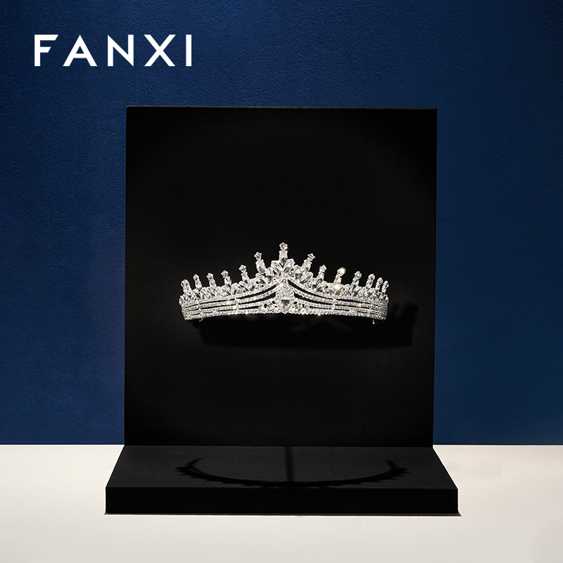 FANXI Luxury Black Beige Suede Metal Crown Display Props TT591-92