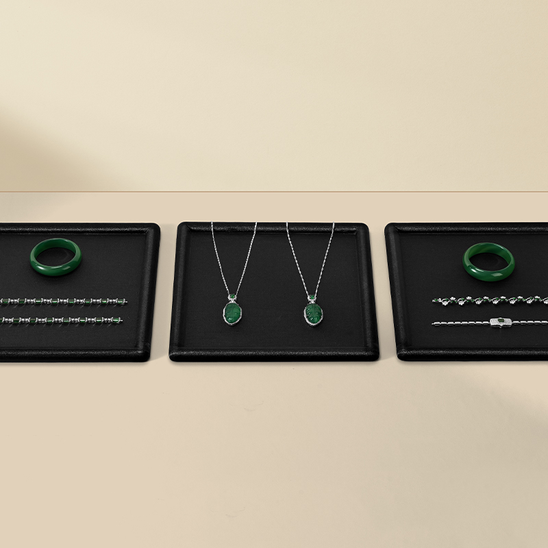 Black green PU leather flat jewelry display tray Item No.: PU081