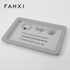 FANXI China new arrival Grey pu leather with microfiber jewelry display tray for ring necklace bangle jewelry showcase plate Item No.: P080