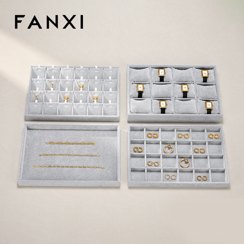 P001 FANXI Wholesale Silver Gray Velvet Jewelry Display Tray