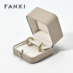FANXI custom beige leather velvet earring box TCH01608025A01