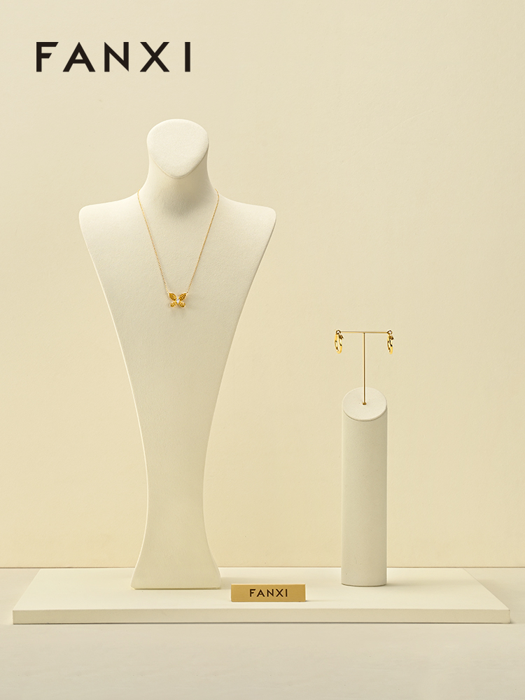 SM050 FANXI New Arrival Beige Microfiber Jewelry Bust