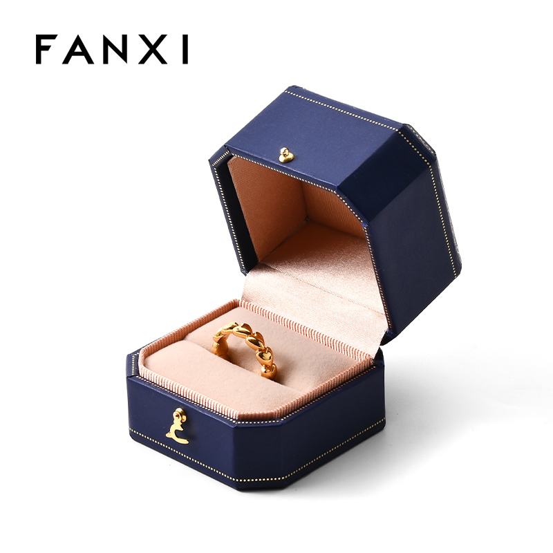 FANXI Custom Blue PU Leather Velvet Silk Cloth Ring Box H07505024A02