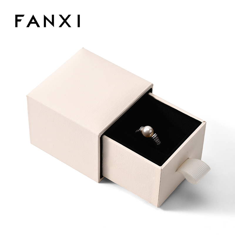 FANXI Custom Beige Leatherette Paper Velvet Ring Box TCH0480401025A03
