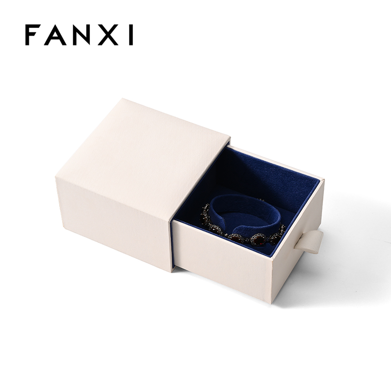 FANXI Custom White Leatherette Paper Velvet Bracelet Box TCH0480403025A02