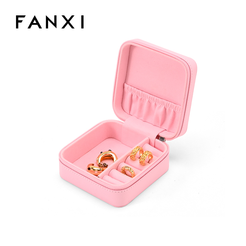 FANXI Custom Pink PU Leather Microfiber Earring Box HD017A18