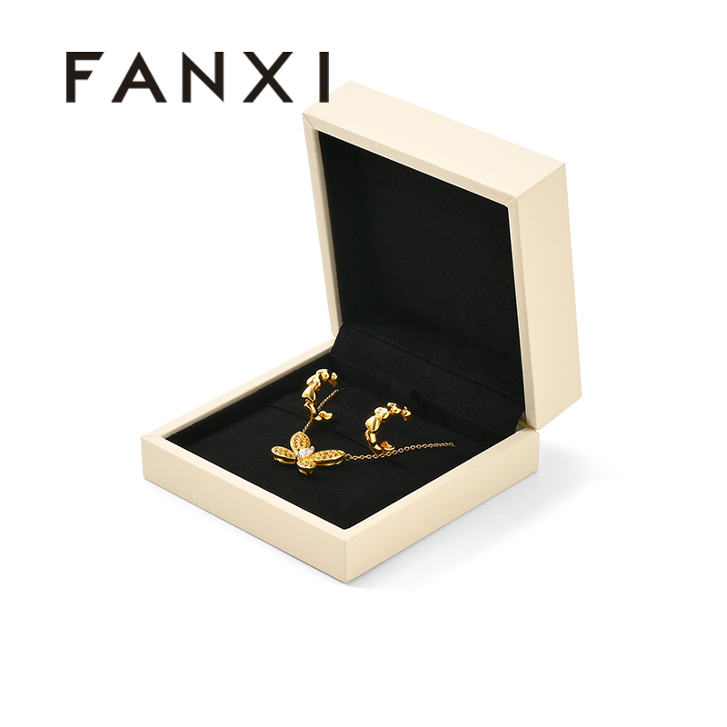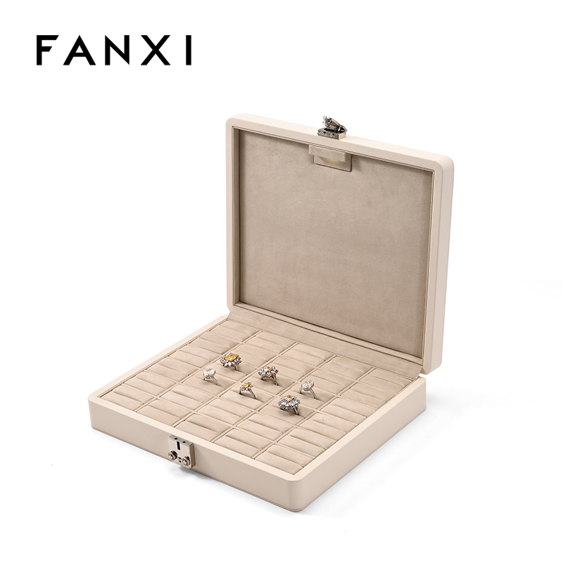 FANXI Custom Beige PU Leather Velvet Jewelry Box H06802003A03