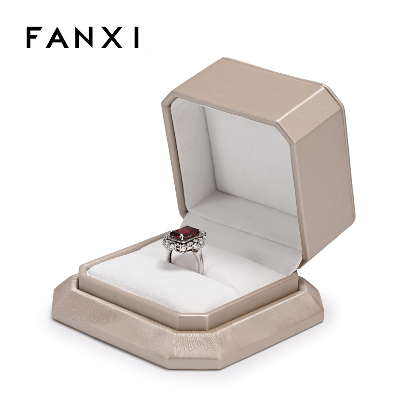 FANXI Custom Champagne Color PU Microfiber Ring Box H07501006A06
