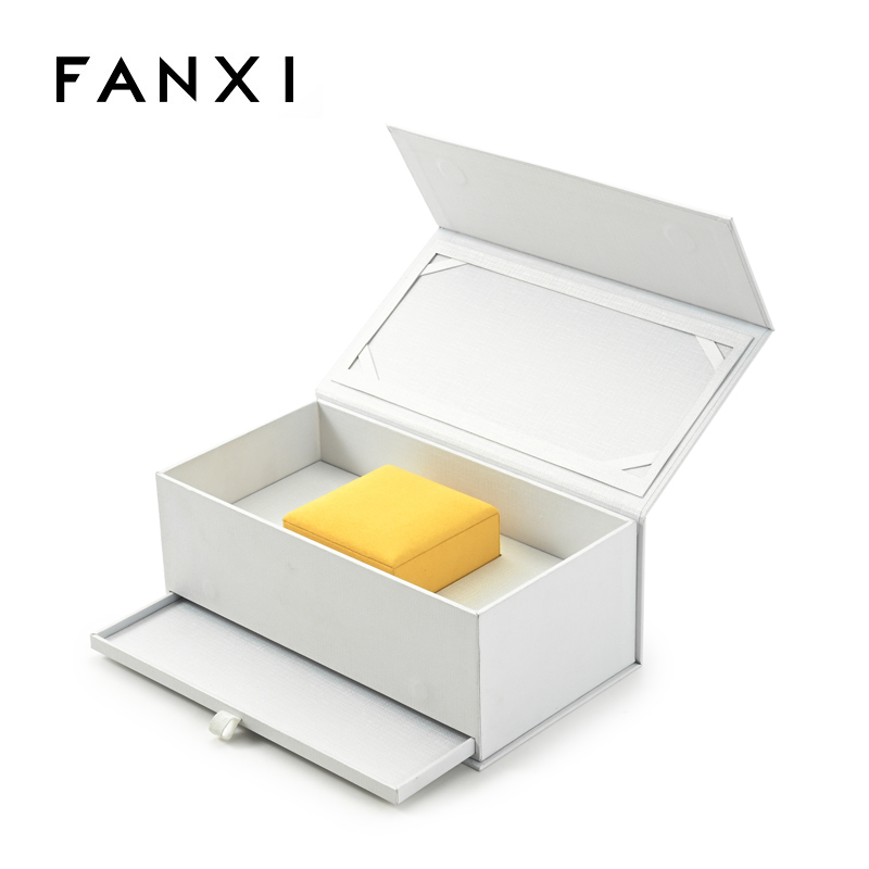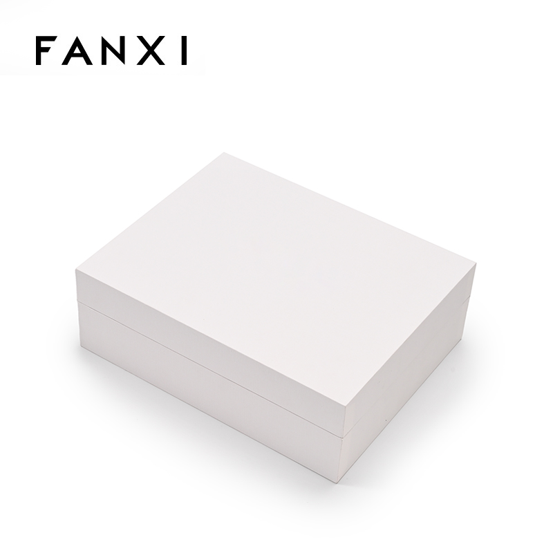 FANXI Custom Logo OEM Plastic Packaging Boxes For Ring Pendant Necklace Bracelet Storage White Leatherette Paper Jewelry Box Item No.: H051