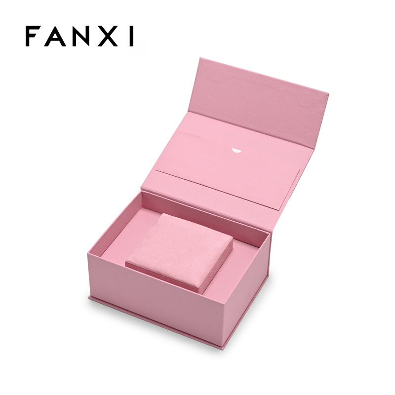 FANXI Custom Pink PU Leather Microfiber Jewelry Box H13202019A01